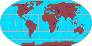 Figure 2a-6: Robinson’s projection. This projection is common in maps that require somewhat accurate representation of area. This map projection was originally developed for Rand McNally and Company in 1961.